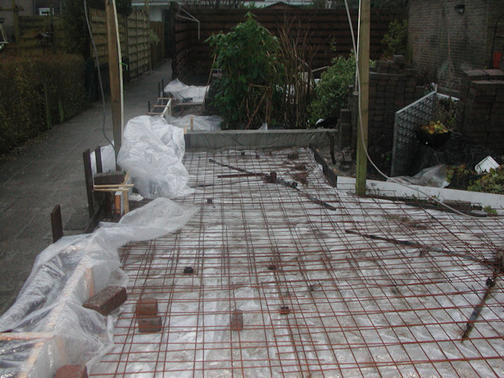 Voor de tweede keer kunnen we weer met kruiwagens beton lopen en storten.