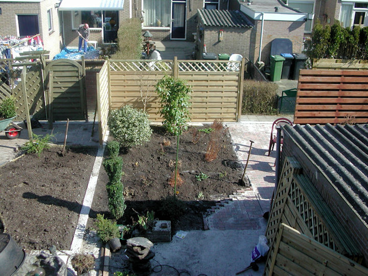 Planten erin gezet en gedeelte van de schutting geplaats.